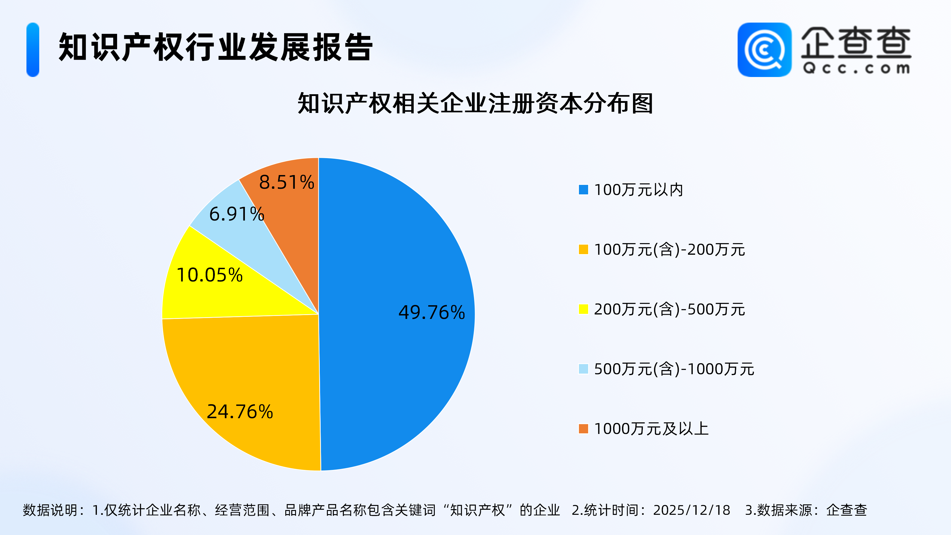企查查数据显示,从注册资本来看,知识产权相关企业多为轻量级企业,注册资本在100万元以内的相关企业近半,占比49.76%,其次注册资本在100万元(含)-200万元的相关企业占比24.76%。注册资本在1000万元及以上的相关企业占比8.51%。3.今年已注册相关企业超17万家,远超去年全年