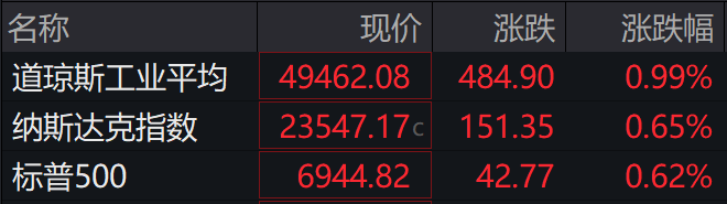 当地时间周二,美国股市集体收高,道指和标普500指数均创历史收盘新高。截至收盘,标普500指数涨0.62%,纳指涨0.65%,道指涨0.99%。