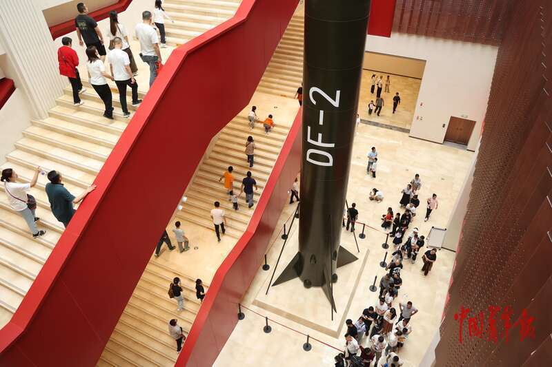 10月3日,四川省梓潼县两弹城博物馆,游客们在参观。两弹城是中国工程物理研究院院部旧址,这里先后完成了原子弹、氢弹的武器化以及新一代核武器原理攻关等国防科研任务。“两弹一星”功勋奖章获得者邓稼先、王淦昌、于敏等科学家曾带领数万名科研工作者扎根于此。依托独特的历史背景和鲜明的时代文化,两弹城现已被列为“国家4A级旅游景区”“第八批全国重点文物保护单位”“全国中小学生研学实践教育基地”“科学家精神教育基地”。2025年国庆假期期间,许多游客到此参观。中青报·中青网记者 王鑫昕/摄