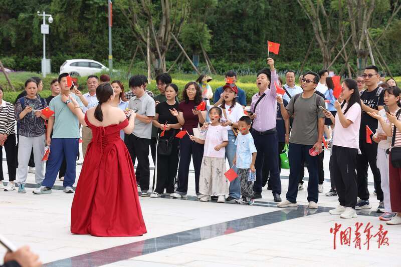 10月3日,四川省梓潼县两弹城景区,一场快闪活动,游客们齐声高唱《我和我的祖国》。中青报·中青网记者 王鑫昕/摄